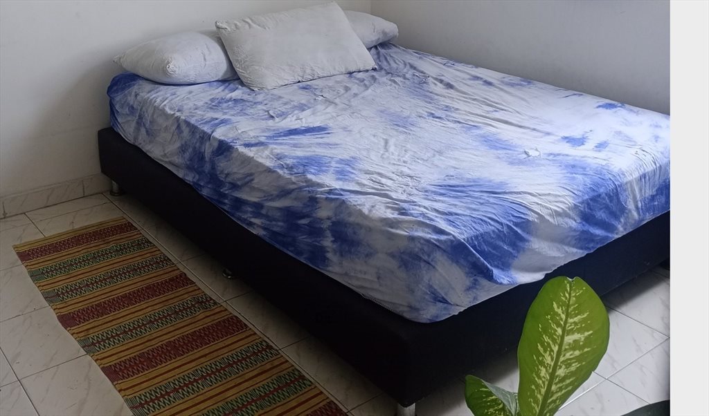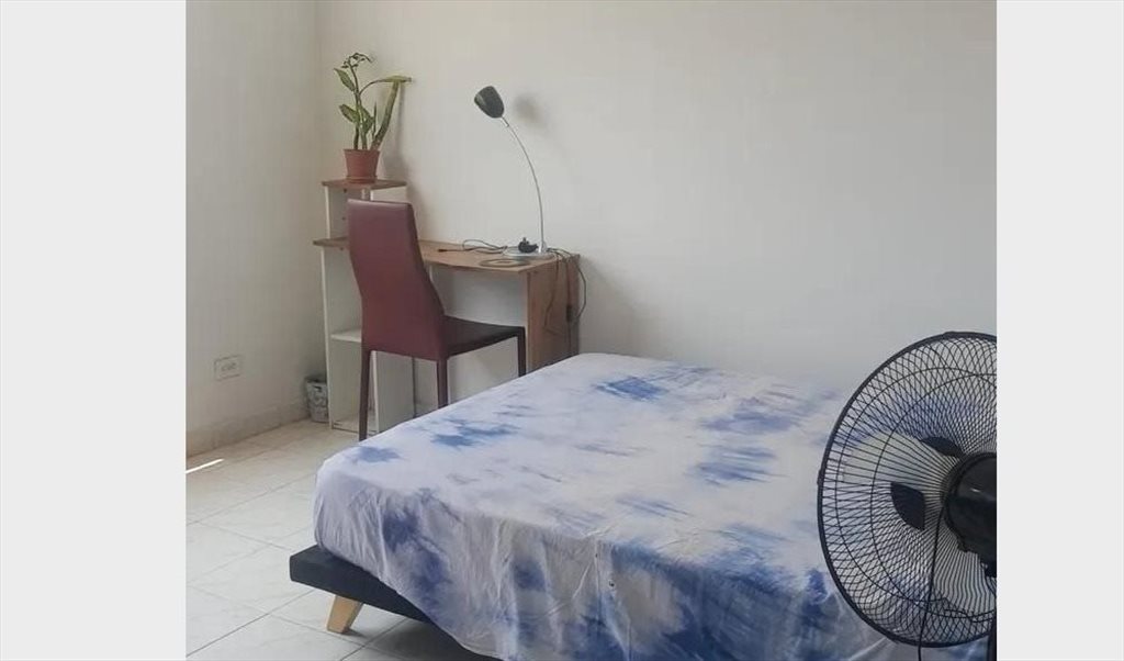 Colchón doble calidad premium, sábanas de algodón, espacio de trabajo, closet amplio, ventilador, uso de lavadora y cocina equipada.