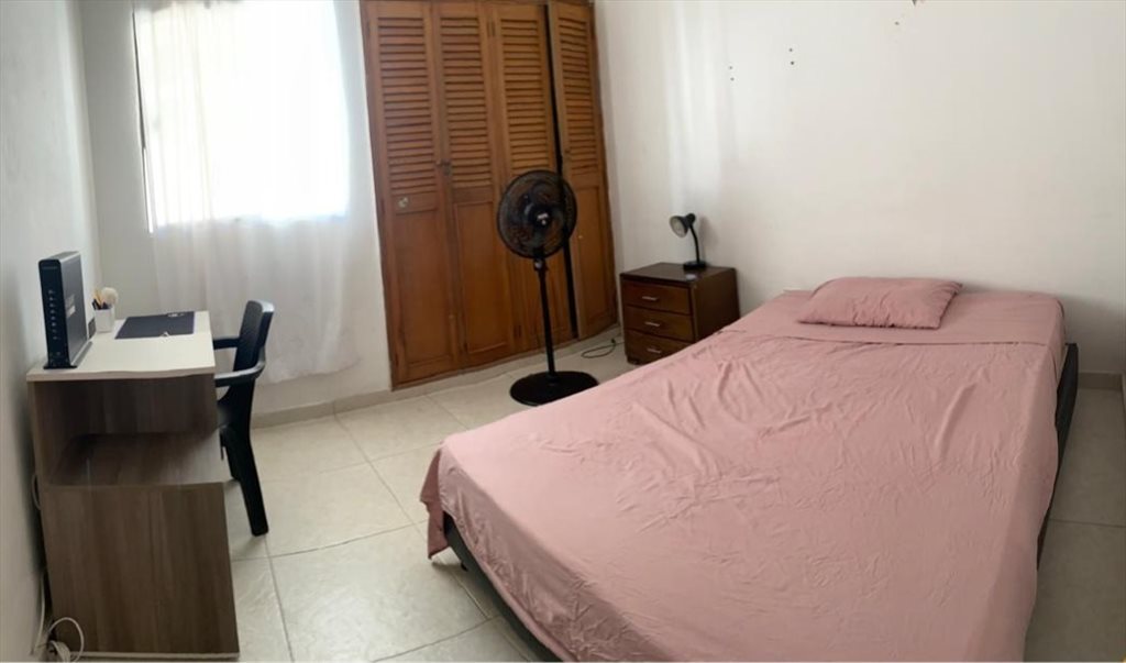 Se busca persona trabajadora ( con empleo certificado) para ocupar esta comoda habitación en casa familiar. La habitación está dotada con closet amplio, somier semidoble, escritorio o mesa de noche y abanico. En la casa vivimos dos adultos y un gato.