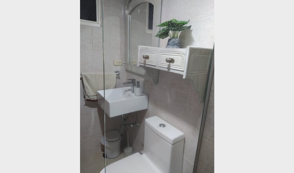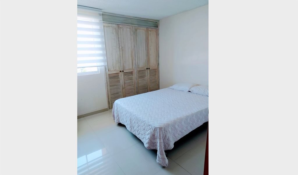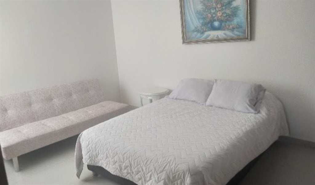 Habitación muy amplia ideal para personas que les guste la comodidad y tranquilidad cama doble, baño interno y walking closet, aire acondicionado, limpieza y lavado de ropa.