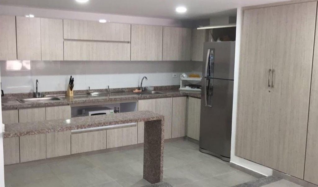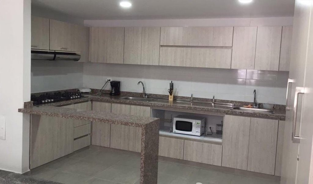 Acceso a zonas comunes: sala con TV, cocina-comedor, terraza social y área de labores.