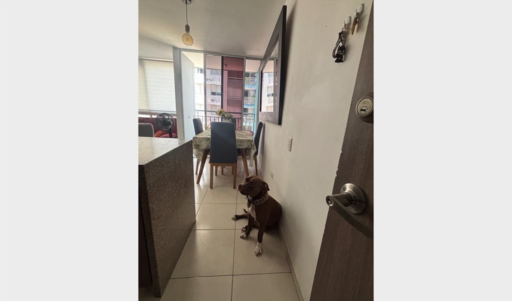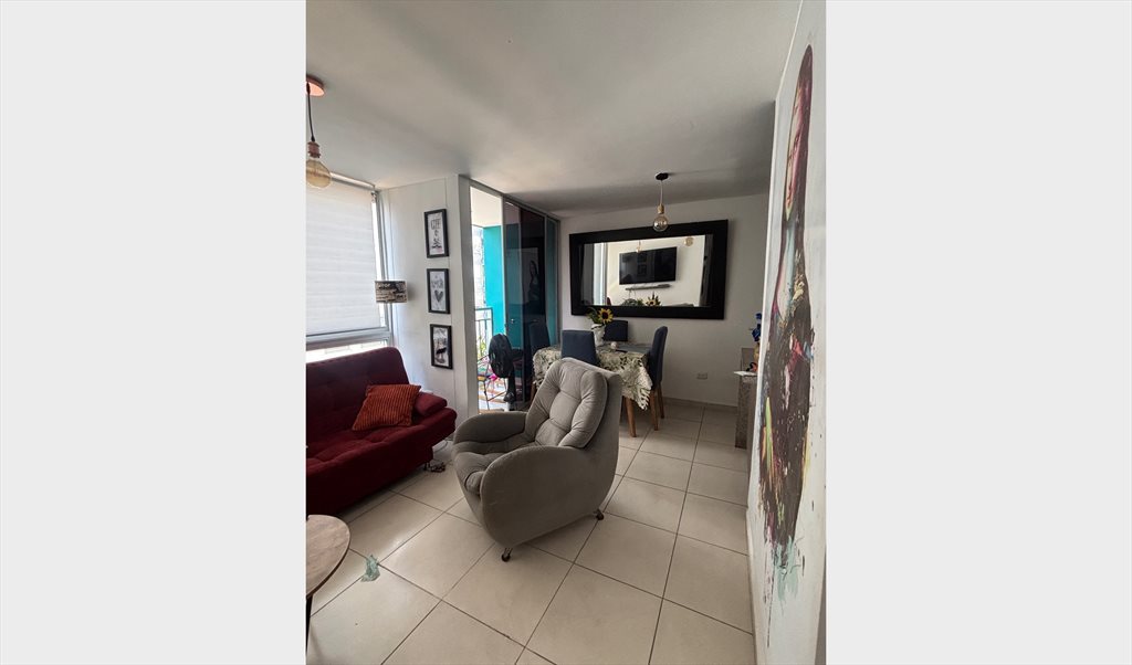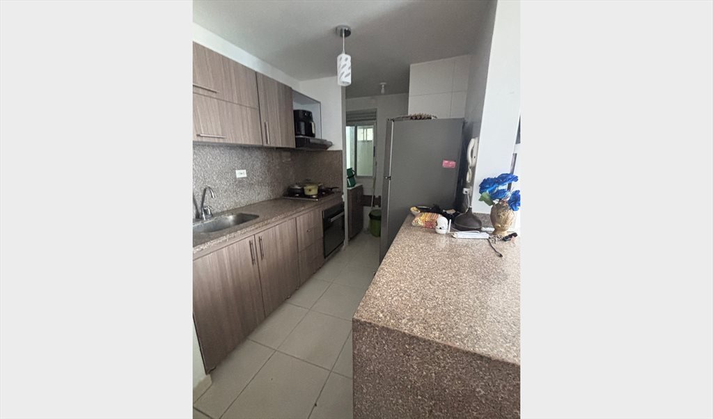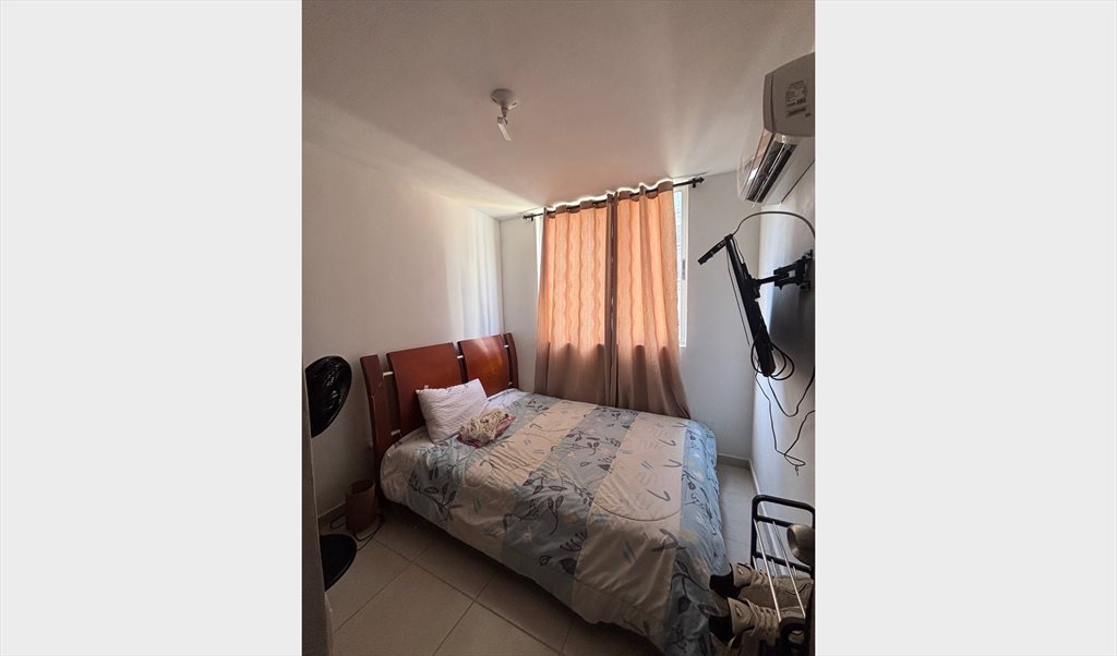 Habitación amoblada con cama , TV, clóset, aire acondicionado, acceso a lavadora y cocina ; conjunto con parqueadero y piscina