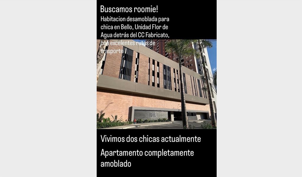 Tenemos una habitación desamoblada disponible para chica en Bello, detrás del CC Fabricato en una unidad cerrada nueva espectacular