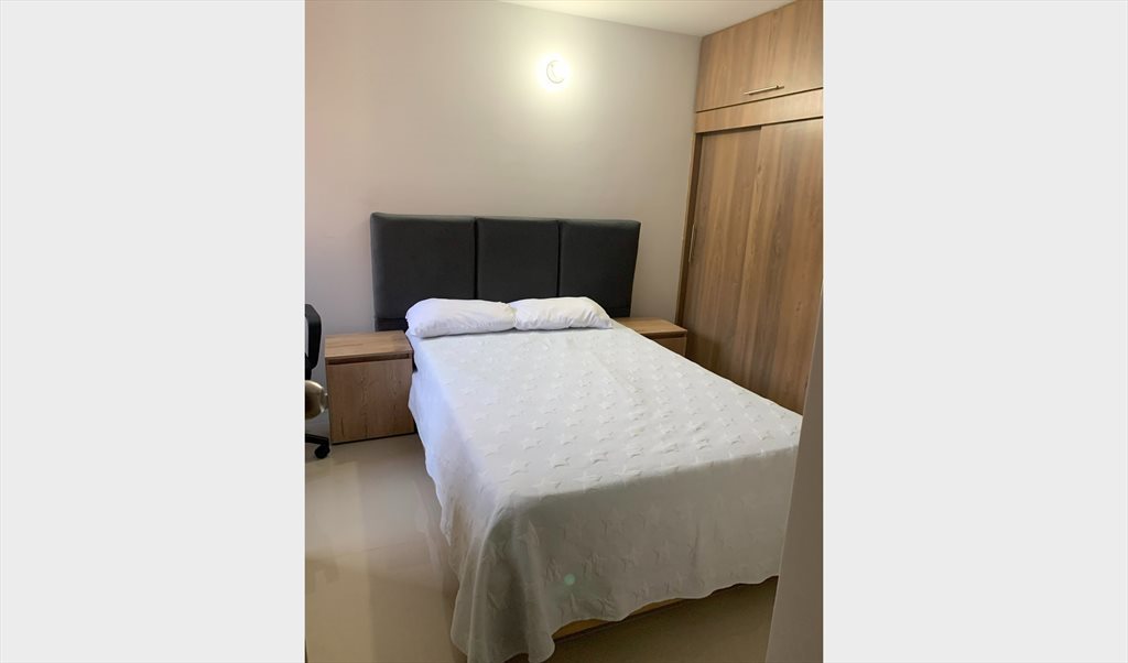 *Completamente amoblada con cama, colchón, dos mesas de noche, escritorio amplio en L y silla ergonómica, TV, Closet grande y baño privado.