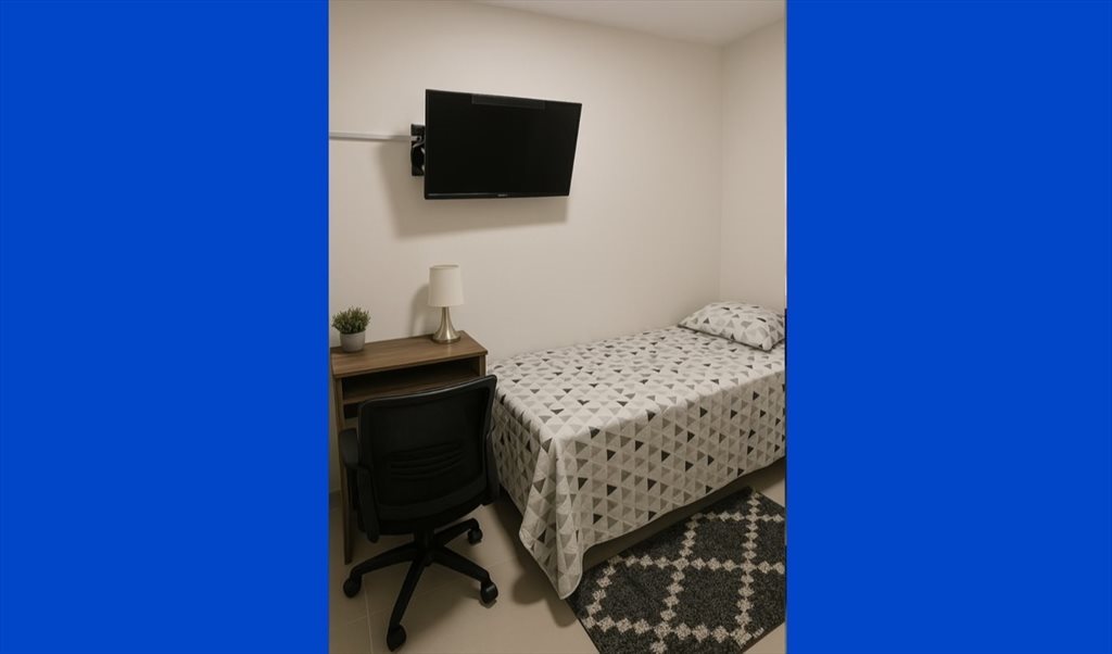 📋 La habitación completamente dotada con cama, colchón y closet, escritorio, silla ejecutiva y ergonomica, TV Smartv con más de 300 canales,