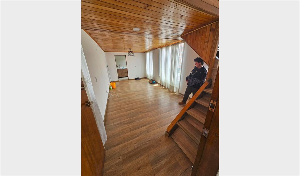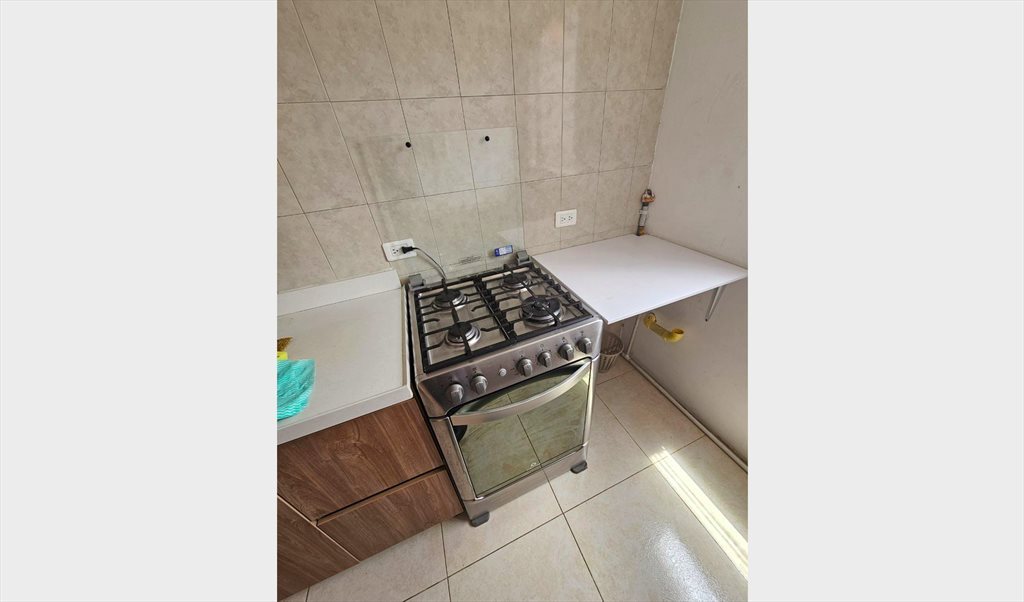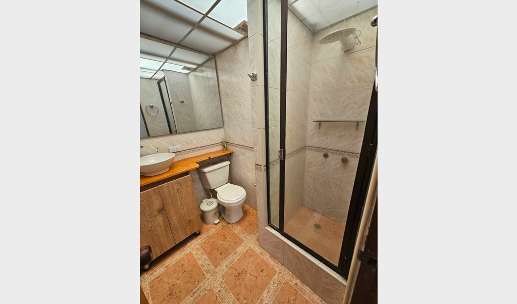 Habitación principal con baño privado en apartamento duplex con habitación pequeña sin baño que puede ser utilizada de oficina. El apartamento cuenta con tres habitaciones, dos baños, sala, comedor, cocina, segundo piso y ático. La sala está amoblada y la cocina cuenta con vajilla, ollas, sartenes, electrodomésticos (nevera, lavadora/secadora, horno airfryer, olla multifuncional), entre otros.