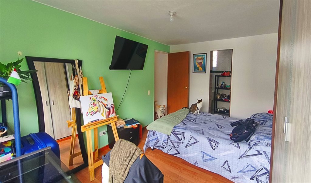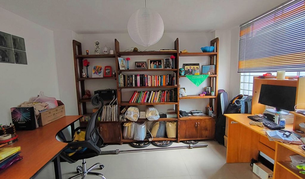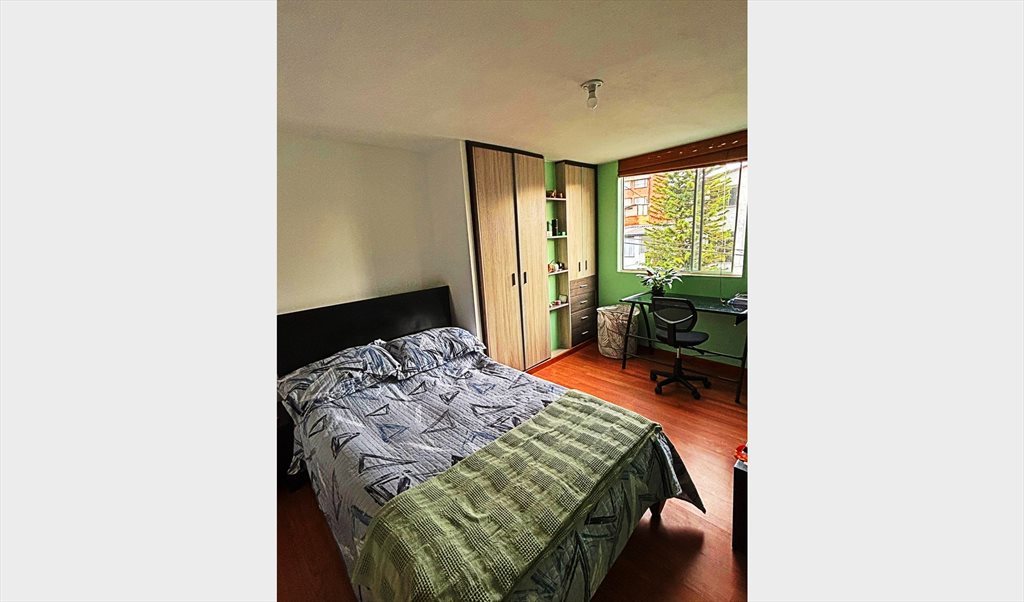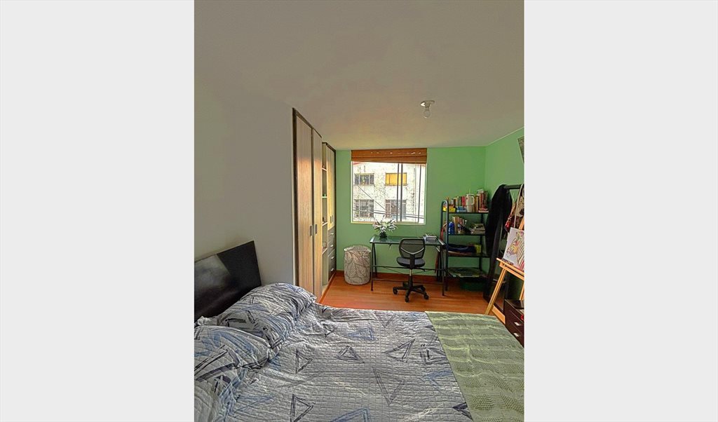 Cómoda habitación amoblada con baño privado, amplia iluminación natural, televisión, cama semidoble, closet, escritorio, y parqueadero, dentro de magnifico apartamento con espectacular vista al centro de la ciudad.