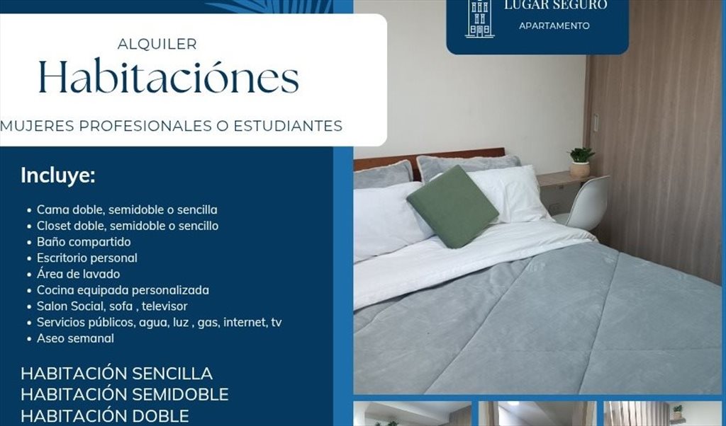 Se arrienda habitación en apartamento nuevo en Gallet la Salle con 3 habitaciones exclusivo para mujeres universitarias, trabajadoras y emprendedoras el arriendo incluye :
