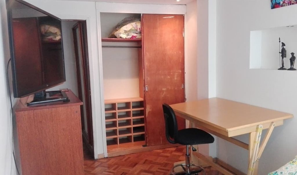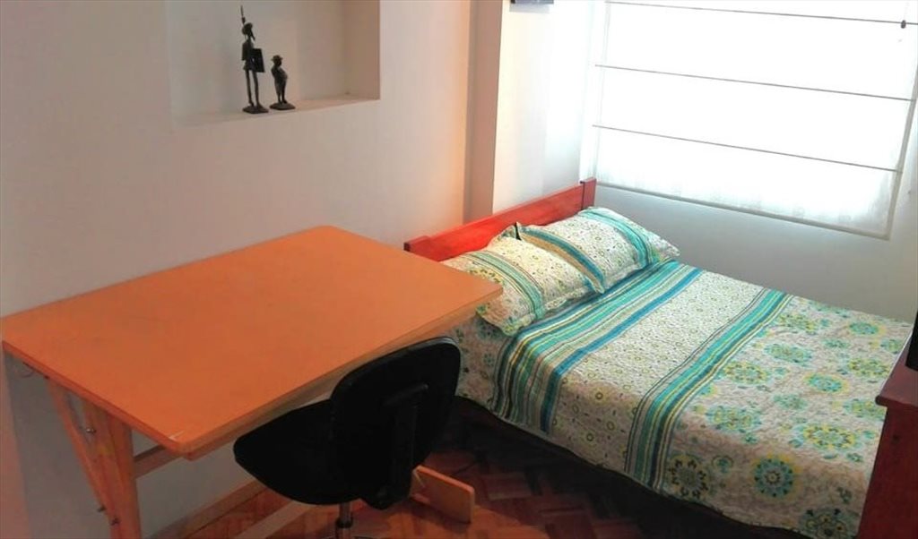 Habitación iluminada y amplia, completamente equipada, consta de cama semidoble, closet, mesa de trabajo con silla, blackout y cortina, Tv smart, wifi y baño compartido con otra persona. Se localiza en chapinero, en la carrera 7 con calle 45, una ubicación muy central, segura y cerca de vías principales, servicio de Transmilenio, a pocas cuadras de la universidad Javeriana, Piloto, Católica y Santo Tomas, supermercados, restaurantes y centros comerciales. El canon incluye servicios.Cel