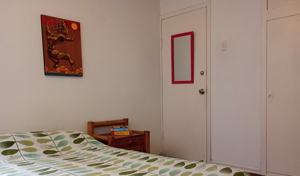 La habitación es amplia tiene una cama semi doble r cómoda y una hamaca, mesa de noche, escritorio, lámpara de mesa…El baño se comparte.🙆♀️