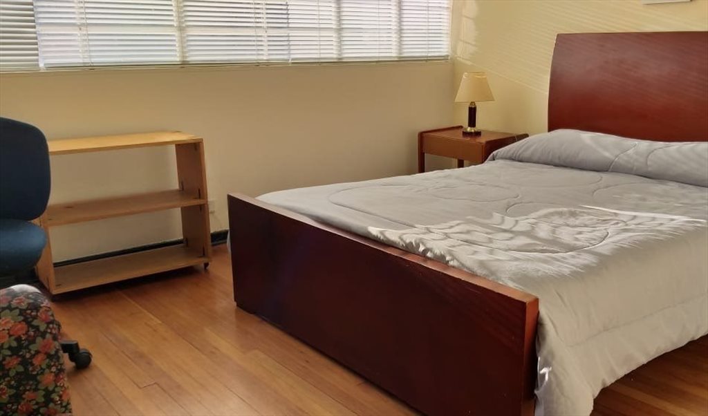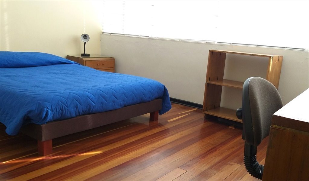 Las habitaciones están en segundo y tercer nivel, unas dan hacia la calle y otras al amplio jardín posterior, son habitaciones amobladas con cama tipo queen, mesita de noche, closed amplio para ropa, mesa de escritorio , sillas, lamparas, etc.El Wifi es de Alta velocidad. La habitación se arrienda por meses.