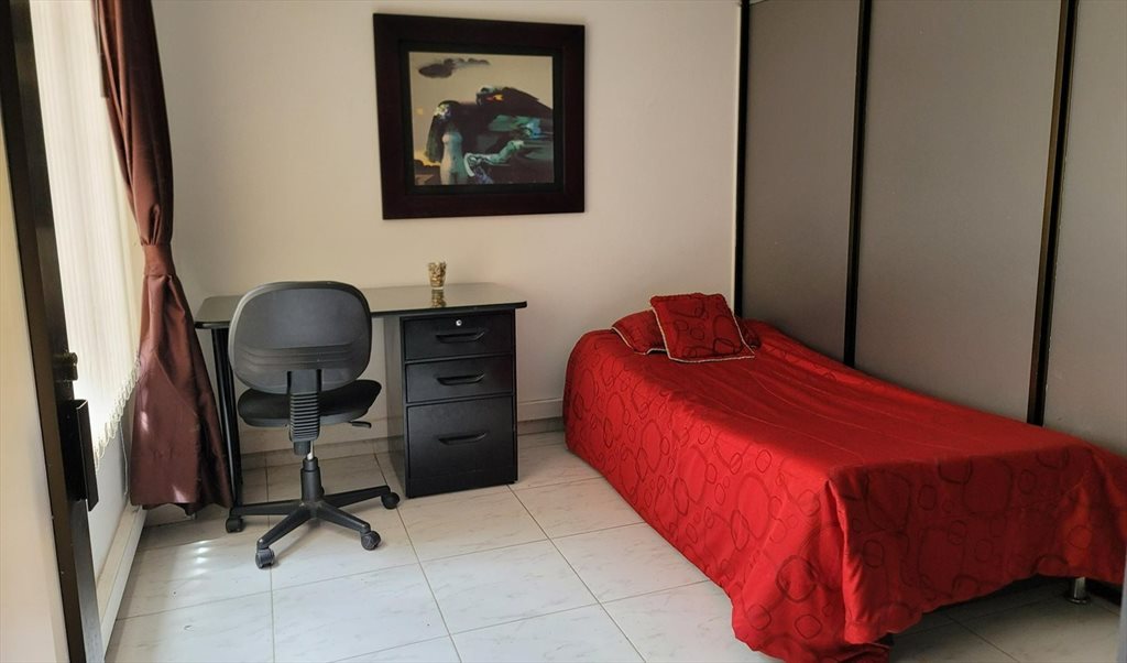 Seguro, limpio, ordenado, habitación con ventana, closet, escritorio, cama sencilla y áreas comunes. Ideal para estudiantes de diferentes lugares del mundo.