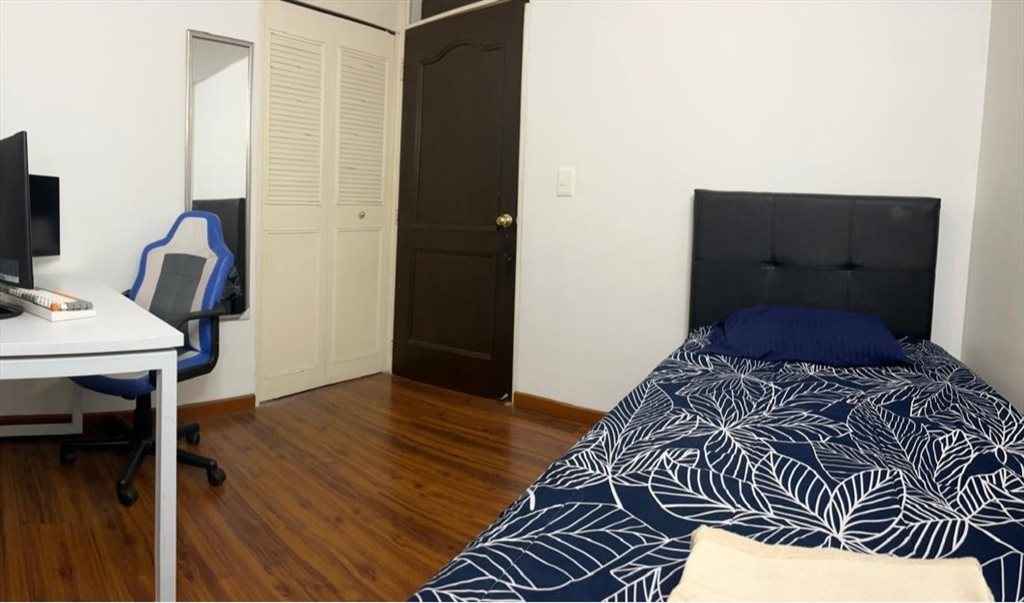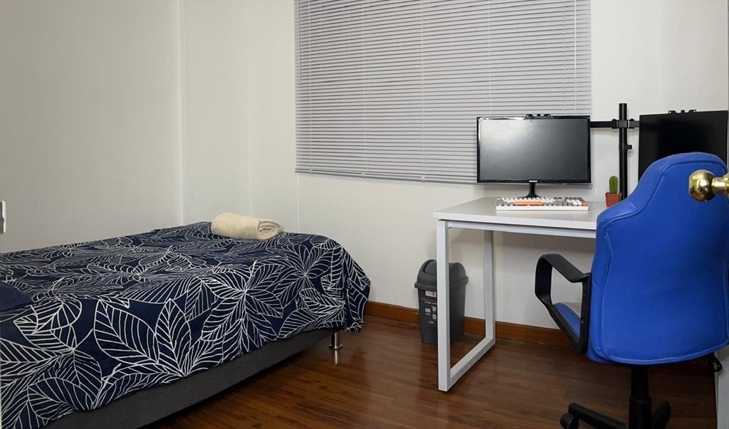 Somos una pareja de recien casados, estamos alquilando 1 habitacion con cama, aunque el baño es externo es inmediatamente al lado de la habitacion, y se comparte con una mujer, basicamente todos trabajamos, el apartamento es silencioso y la zona es tranquila, se encuentra a 7 minutos caminando de la parada de Puente Largo y 12 minutos de la parada de la 106 (autonorte). El apartamento esta equipado con Lavadora/secadora, TV con netflix (general), wifi, cocina equipada, microondas, esperamos que el inquilino sea, buen inquilino, que cuide los equipos, Limpia y Organizada