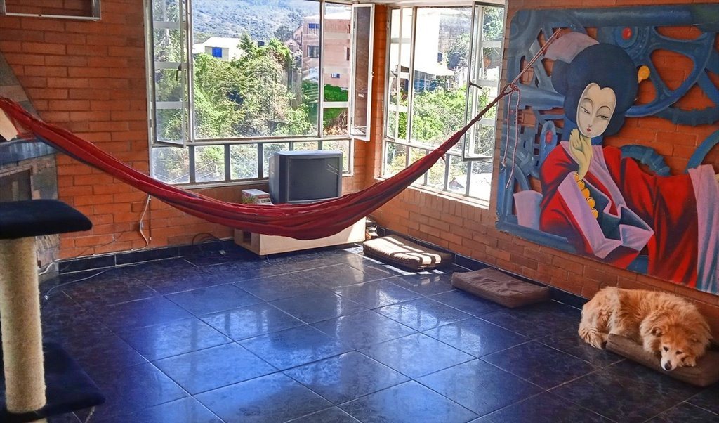 En el apto vivo yo que soy musico, 2 gatos y un perro.