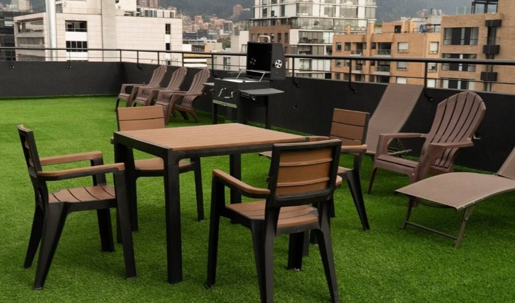Incluye terraza bbq con buena vista, gimnacio bien equipado, lavanderia, espacio coworking, esta localizado en una zona estrategica facil desplazamiento tanto para el sur como para el norte, a dos cuadras del parque de la 93, cerca al centro Andino, el museo del Chico, 5.6km del parque Simon Bolivar, 15 km del aeropuerto intarnacional El Dorado.