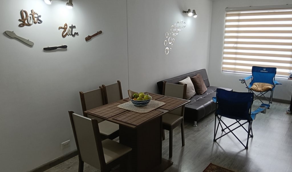 Espacios comunes: sala, comedor, cocina (lavadora y nevera). Gimnasio, ascensor, conjunto cerrado.