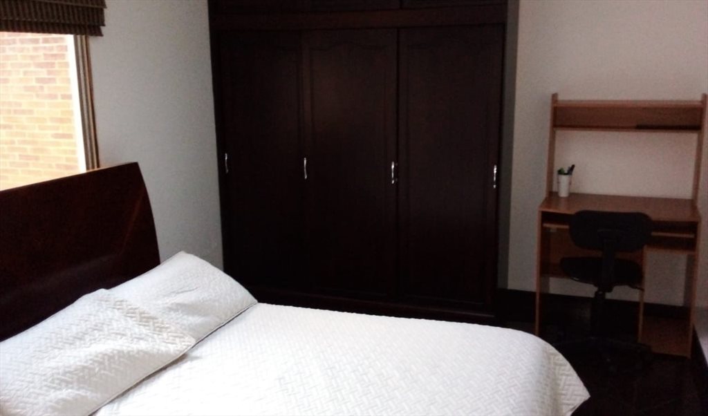 Habitación amplia, iluminada, cama doble, closet empotrado grande, baño uso exclusivo y cocina compartida solo con una persona. Libre de humo. Privacidad y tranquilidad a unos pocos pasos de la Universidad Militar, el Canton Norte y la glorieta de la 100 con 15. Posibilidad de parqueadero. Edificio con vigilancia privada y portería. Excelente localización.