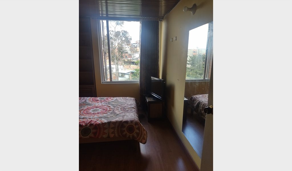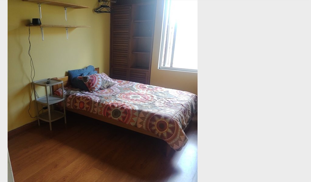 Habitación amoblada con vista exterior, soleada en la tarde; con cama semidoble y cobertores, clóset a la vista, internet 300 megas, compartiendo cocina, baños, lavandería, áreas comunes.*GAY FRIENDLY.* Hay gato en el apartamento.