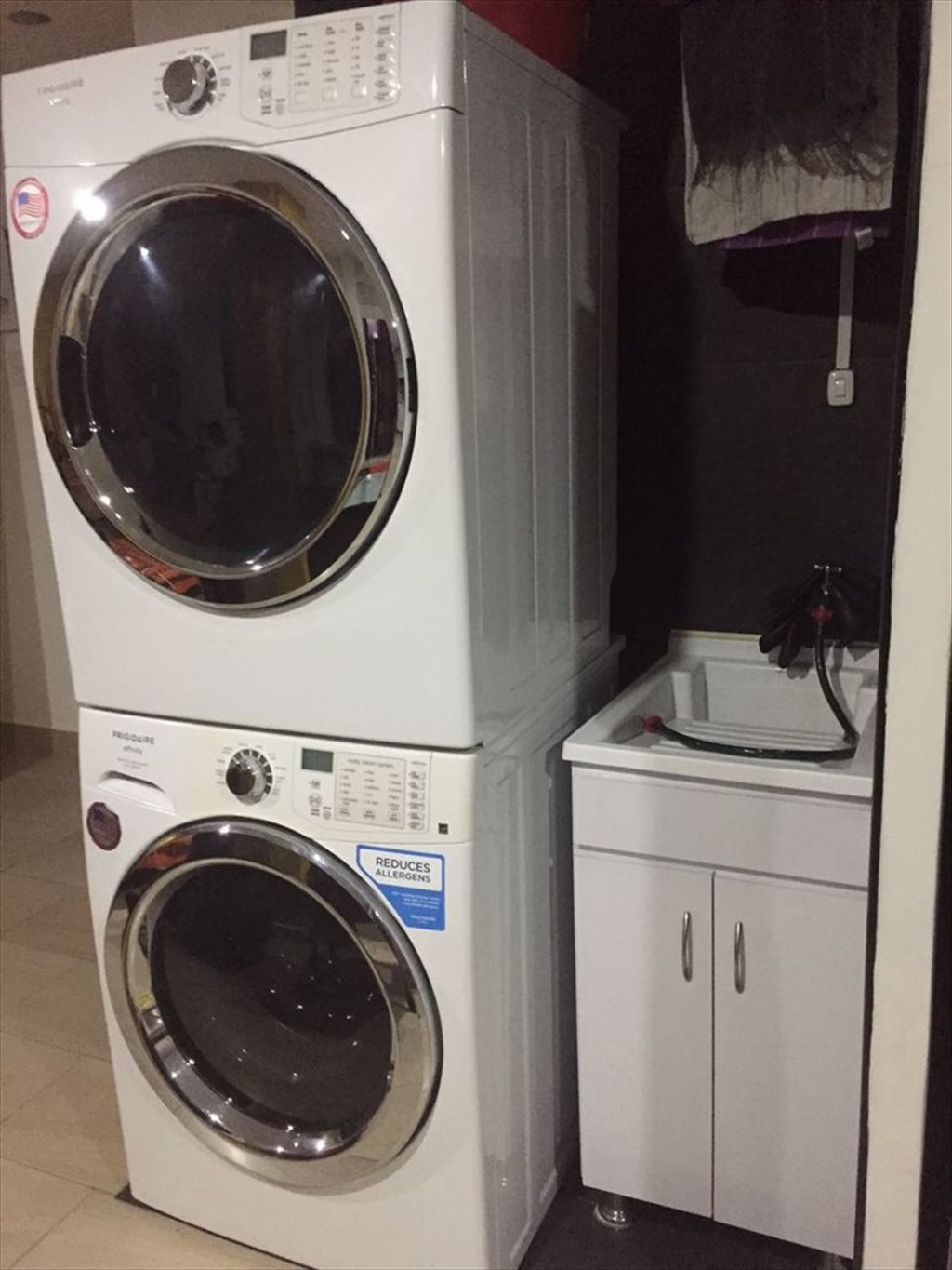 Tienes lavadora y secadora, nevera, cocina equipada, internet, agua caliente y limpieza cada 8 días en las áreas comunes. Incluido en el alquiler: Servicios (agua, luz, internet, gas, teléfono fijo) y limpieza. Si quieres verla puedes llamarme o escribir al whatsapp o dejarme un mensaje en inbox.