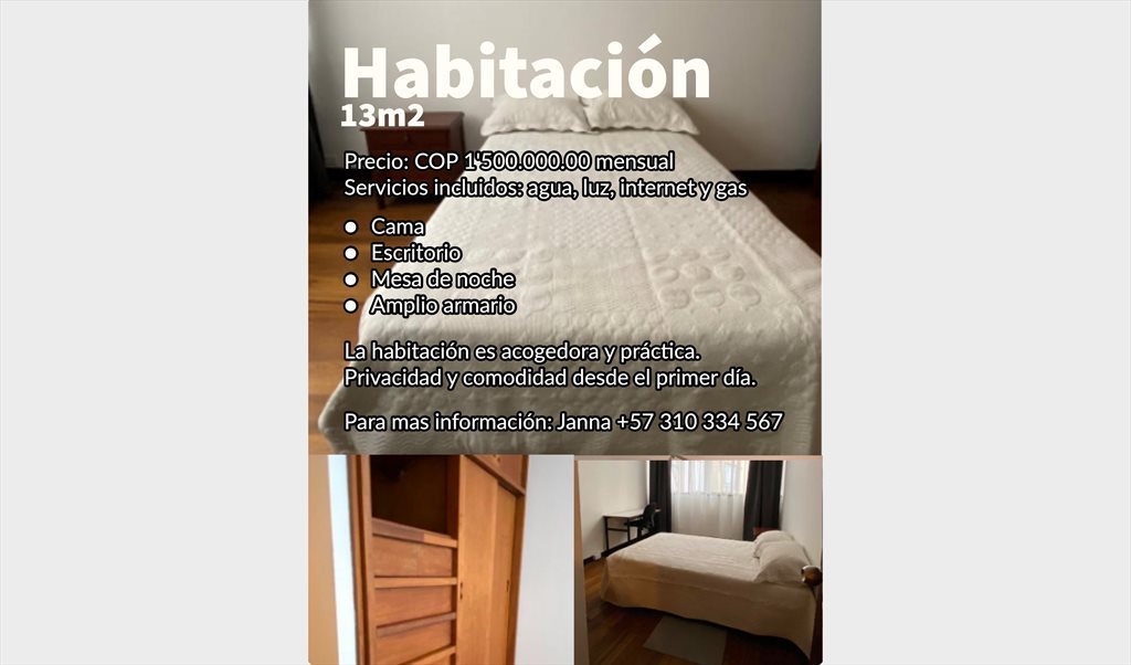 Precio: COP 1'500.000.00 mensual