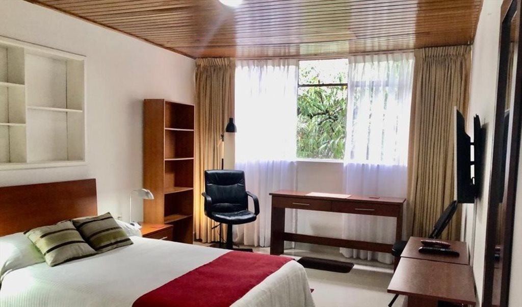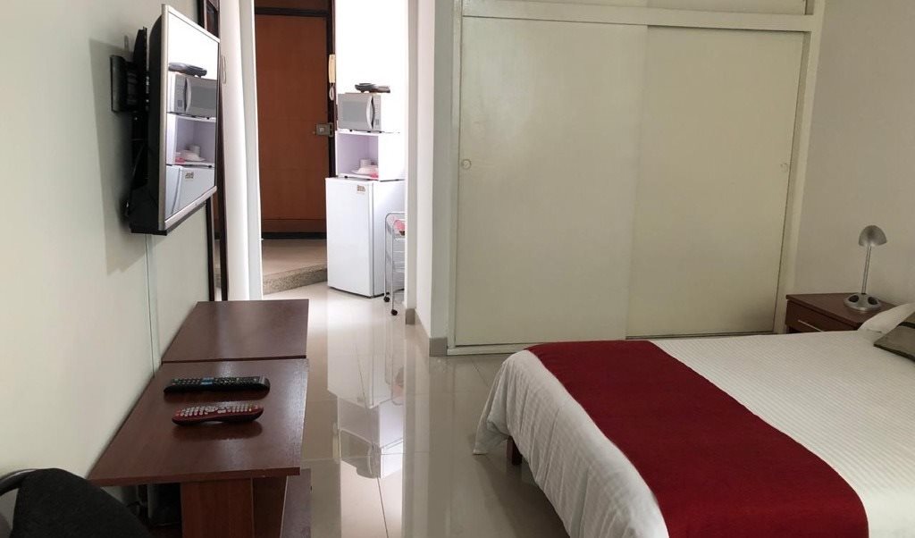 SERVICIOS: agua caliente permanente, T.V. CLARO, Internet veloz, WiFi, Limpieza semanal de la habitación y del baño y cambio de la ropa de cama que les proporcionamos. SIN ACCESO A COCINA ,PERO dentro de la habitación: nevera, horno, cafetera y sanduchera