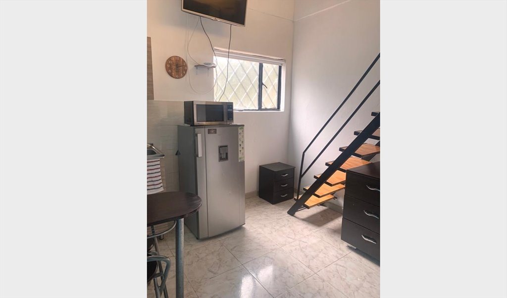Mini apartaestudio amoblado con menaje, electrodomesticos y cocina independiente, y con todos los servicios incluidos (agua, luz, gas natural e Internet de 180 megas en la casa donde se ubica) con lavanderia disponible y arreglo a la habitación con una señora de nuestro staff de limpieza una vez por semana.