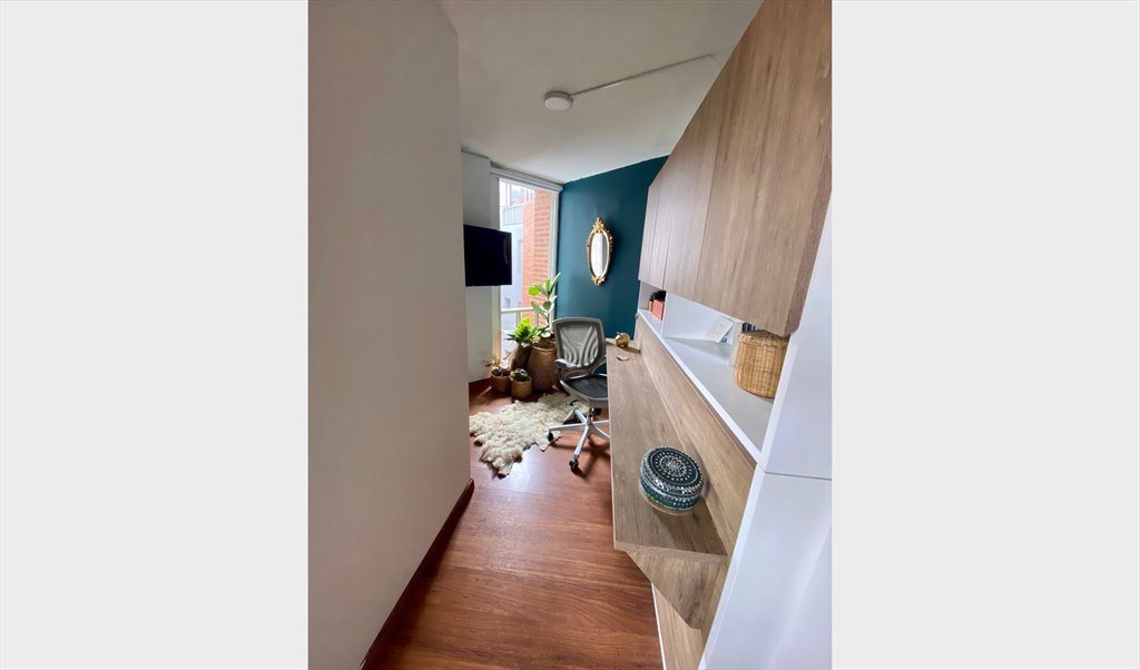 Ubicada en conjunto residencial, cuenta con zonas verdes, salón comunal, oratorio, gimnasio el cual ofrece varias clases grupales, cancha de tenis, cancha múltiple, balcón, chimenea. Transmilenio a 60 mts, supermercado, centro comercial, café, restaurantes, bancos al frente. A 15 minutos de la zona rosa.