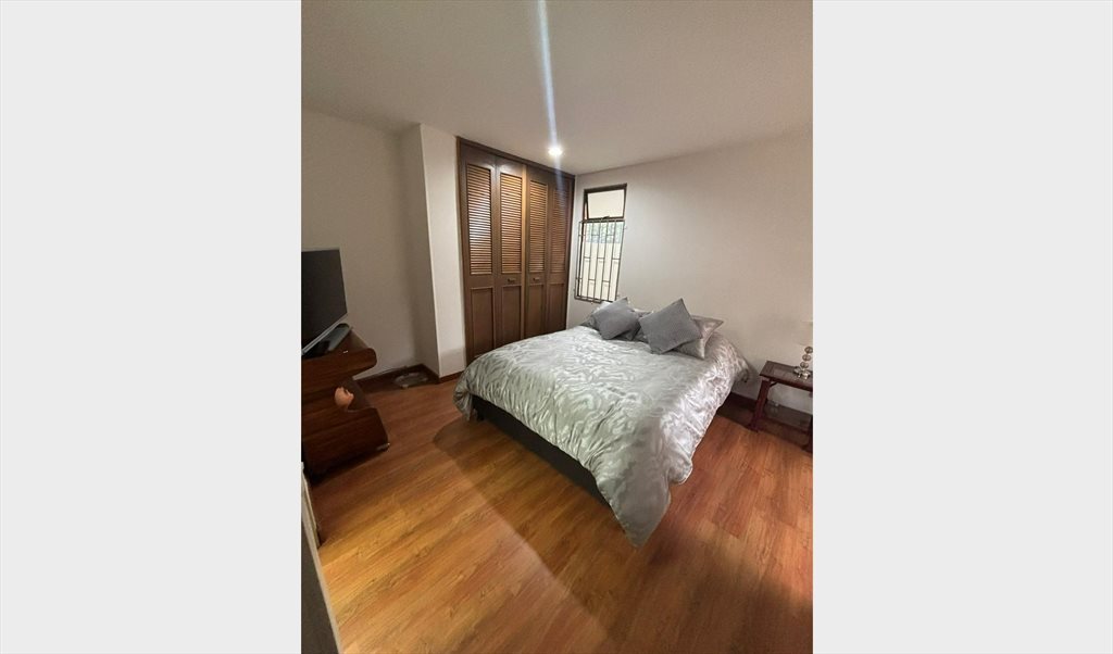 Se está ofreciendo la habitación principal, un espacio amplio y cómodo que cuenta con baño privado, cama doble y televisor, ideal para quienes buscan privacidad y comodidad total. Info al