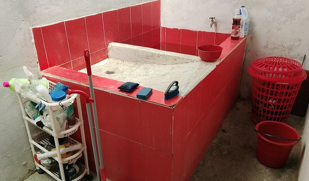 Zona de lavado con cuerdas para secar ropa