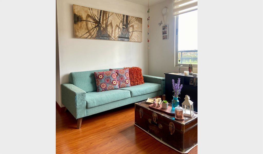 una habitación dentro de un apto de 60 mts , para convivir con una persona y un gato educado , apartamento tranquilo , ordenado , habitacion con closet , cama sencilla o semidoble, mesa de noche, wi fi , baño exterior no compartido, en conjunto cerrado. No se aceptan parejas .