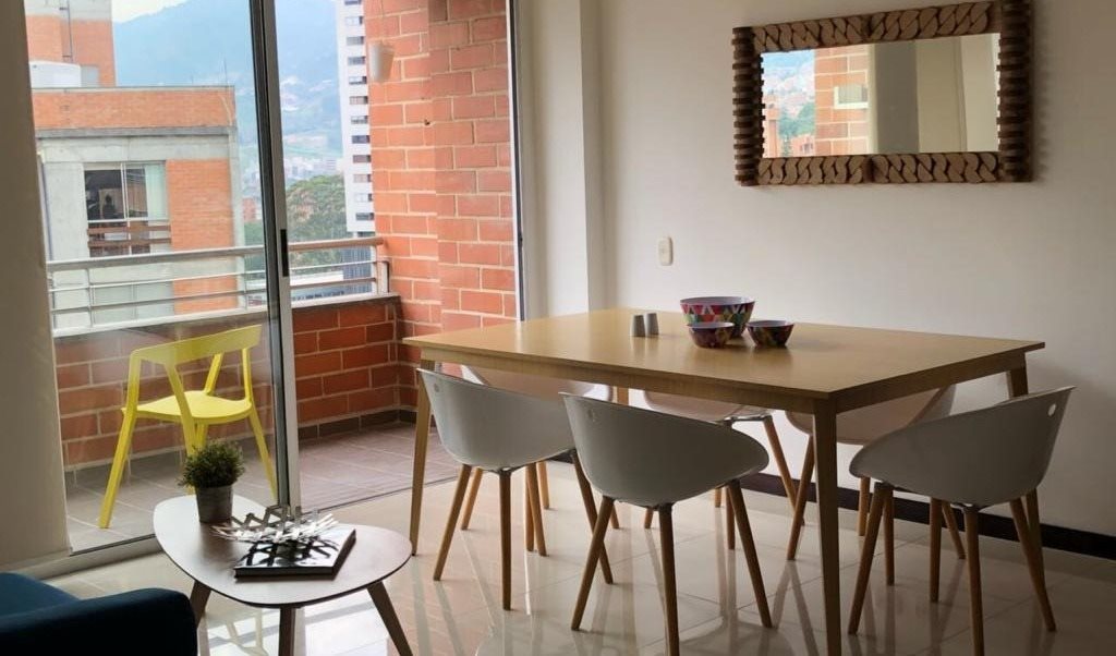 Cozy and quiet apartment 2 bedrooms and 2 bathrooms, 89m2, with balcony access and beautiful views, 6th floor with elevator and private parking, close to everything in “La Frontera, Envigado”. PRICE 4,5M COP monthly, all included, No short rent, minimum one month rental.