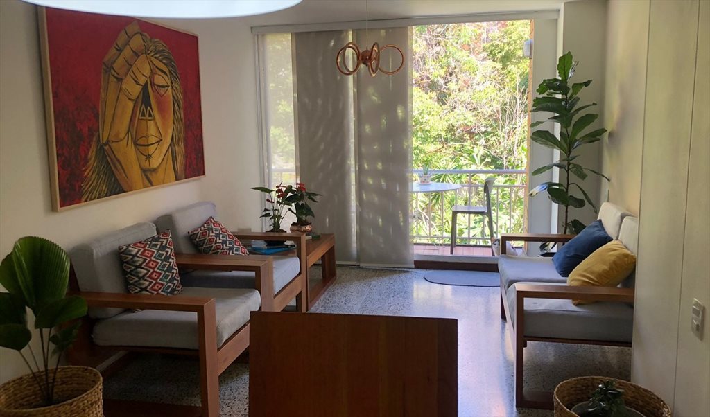 Disponible habitación cerca avenida el poblado, centros comerciales, y universidad EAFIT, , apartamento muy limpio, con mucha luz, 3 balcones, 2 habitaciones 2 baños, unidad cerrada vigilancia las 24/7, la habitación esta amoblada con cama,mesas de noche, closet, escritorio, silla, tv, wifi, balcón, baño exclusivo, servicios de agua caliente, uso de cocina bien dotada, zona de ropa, lavadora sala, comedor y áreas comunes. (para compartir solo con una persona mujer).