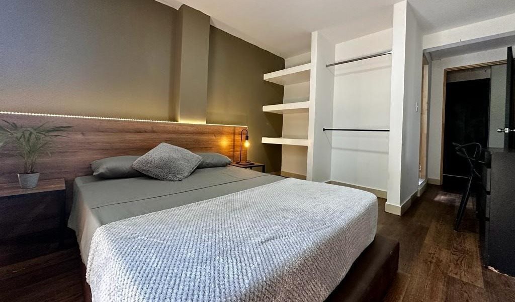 ✔️Amoblado🛋, Cama matrimonial🛏️, sábanas, almohadas, cobija, escritorio, silla de estudio, closet, mesa de noche, ventilador.