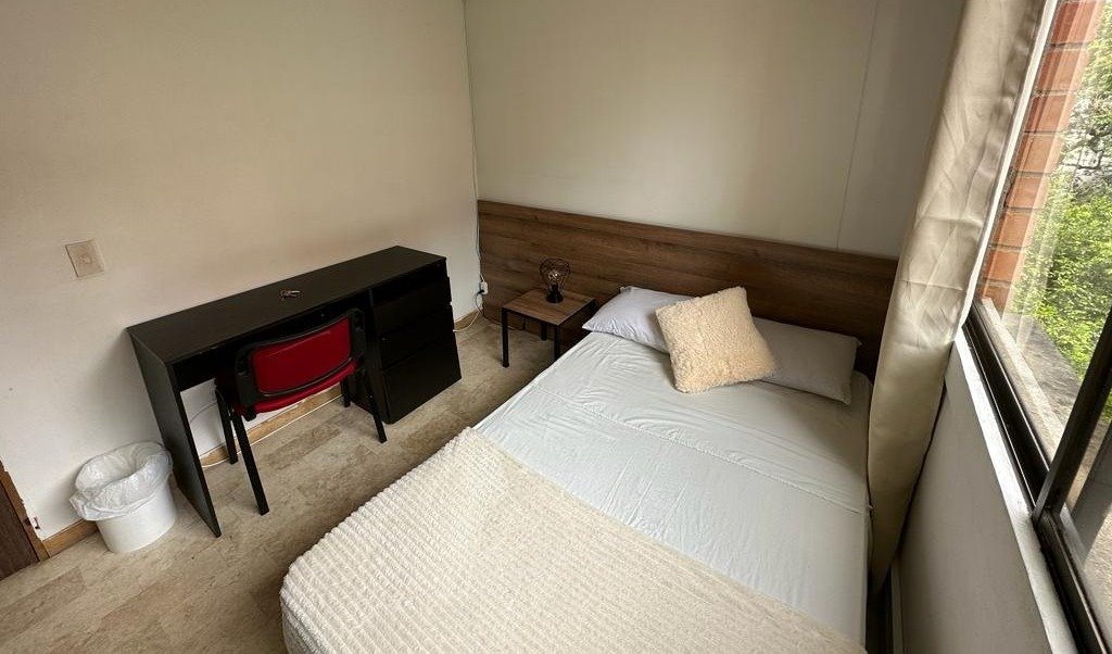 ✔️Amoblado🛋, cama Doble🛏️, sabanas, almohadas, cobija, escritorio, silla de estudio, closet, nochero.