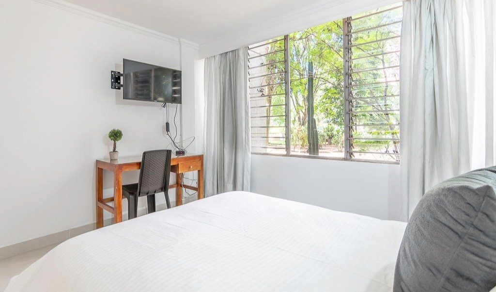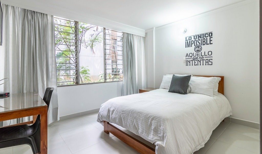 Si quieres tener todo cerca, y además un lugar que te garantice tranquilidad con la gente que vive en tu apartamento, entonces este es el lugar que estas buscando. Habitación completamente dotada, con tv, wifi y el precio incluye una chica que hace aseo dos veces por semana. El apartamento está localizado en el poblado (patio bonito) en una unidad cerrada con zonas verdes, piscina, cancha de futbol y de balosesto.