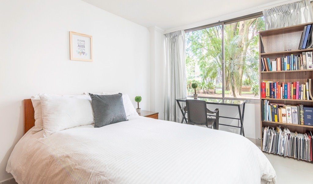 Si quieres tener todo cerca, y además un lugar que te garantice tranquilidad con la gente que vive en tu apartamento, entonces este es el lugar que estas buscando. Habitación completamente dotada, ubicado en patio bonito, en el poblado. El apartamento está localizado en una unidad cerrada con zonas verdes, piscina, cancha de futbol y de balosesto.
