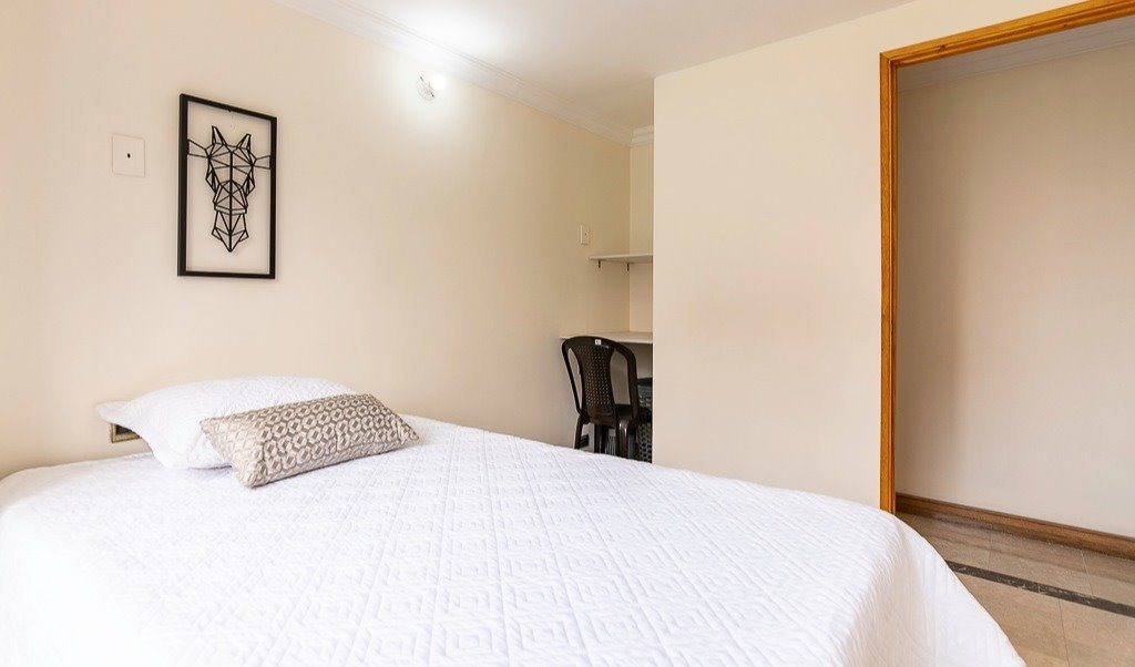 Si quieres tener todo cerca, y además un lugar que te garantice tranquilidad con la gente que vive en tu apartamento, entonces este es el lugar que estas buscando. Habitación completamente dotada con wifi, nochero, closet y escritorio, además el precio incluye aseo dos veces por semana. Se comparte con una sola persona baño y closet. El apartamento está localizado en el poblado (patio bonito) en una unidad cerrada.