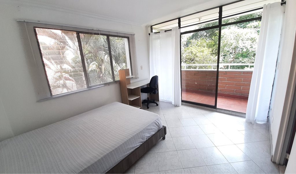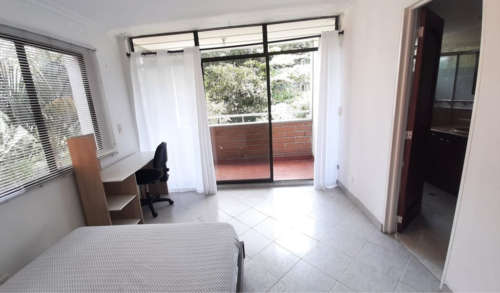 RENTO habitación grande amoblada en el poblado con balcón, baño privado y vestier; la habitación se entrega con cama doble, escritorio y silla, puede hacer uso de los espacios comunes como la sala, comedor, cocina y patio de ropas; Internet de alta velocidad; se ofrece servicio de limpieza una vez por semana en todo el apto y esta incluida en la mensualidad.