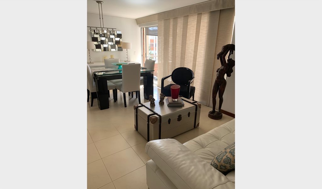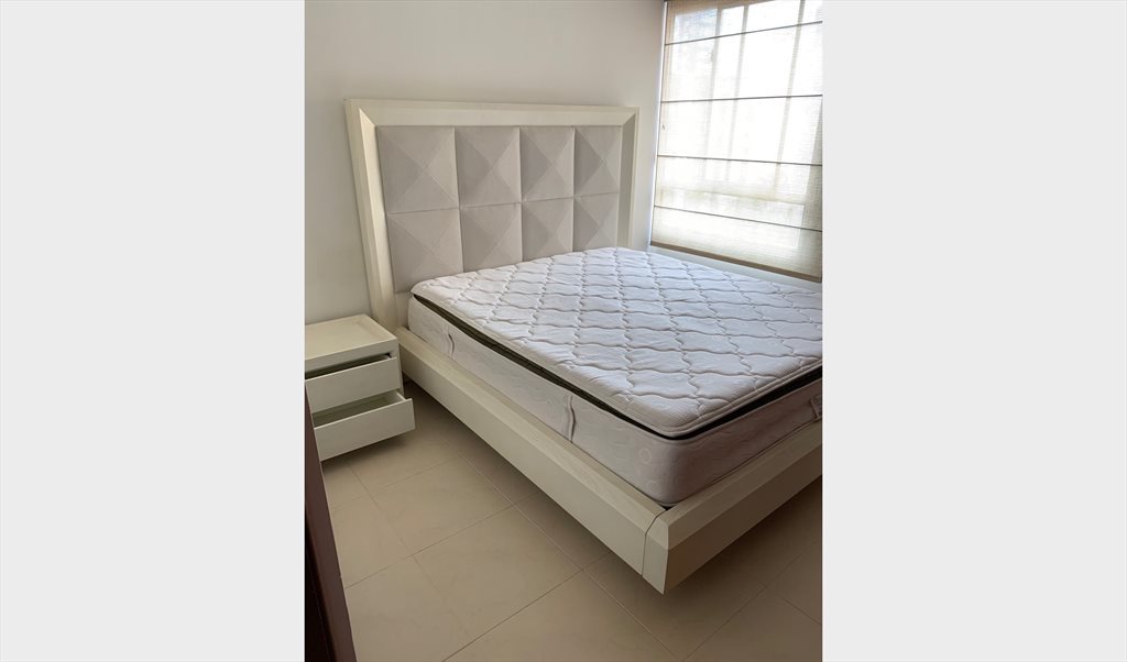 Tiene cama doble, closer amplio, mesa de noche y una silla . Con gimnasio y piscina climatizada, canchas de basquetbol y zonas comunes .