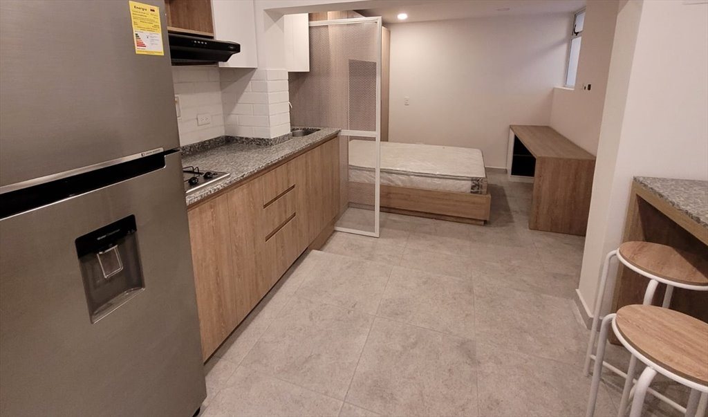 Apartaestudio amoblado en arriendo. Ubicado en la avenida San Juan, una cuadra arriba de la avenida 70, muy cerca del Éxito de la 70 y del estadio. Mide 28 metros cuadrados. Esta recién remodelado, es muy agradable y fresco. Tiene habitación con escritorio y closet, cocina integral tipo americana completamente amoblada y equipada, baño y zona de ropas. Incluye todos los servicios (agua, energía, luz, Internet y Televisión ). Renta mínima por 3 meses. Precio: $1.750.000