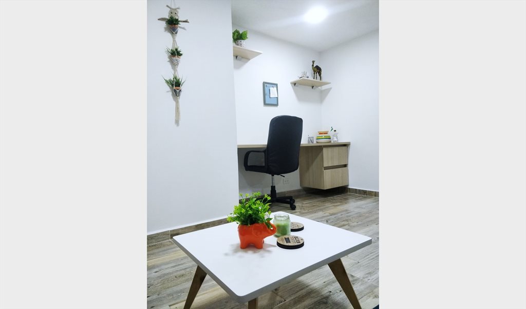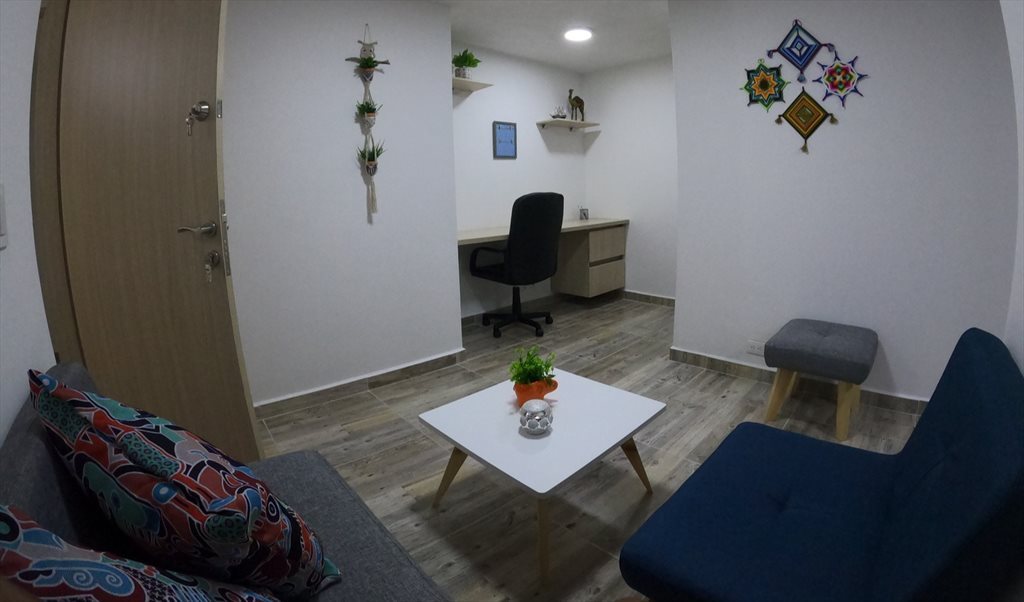 El apartamento tiene un área aproximada de 38 m2, cuenta con una habitación con closet amplio. Tienes a disposición un amplio escritorio para trabajar desde casa si lo necesitas, además de sala-comedor, cocina, zona de ropas y baño.