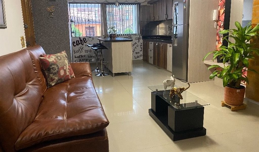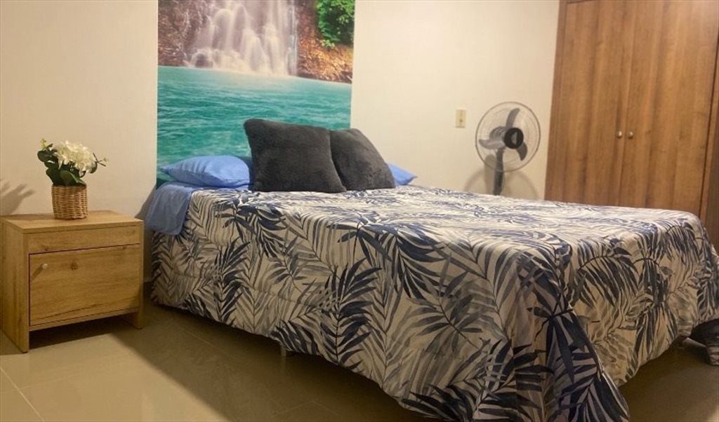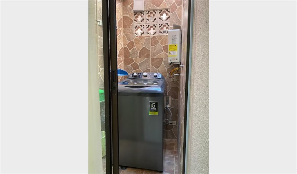 Apartamento 1 piso, para compartir con otro huésped, 1 baño, 2 habitaciones, sala comedor, cocina completamente dotada, patio de ropas, ventanal tipo balcón, se puede parquear en la calle afuera del edificio, el plus es la oficina o cuarto de estudio que posee el apartamento