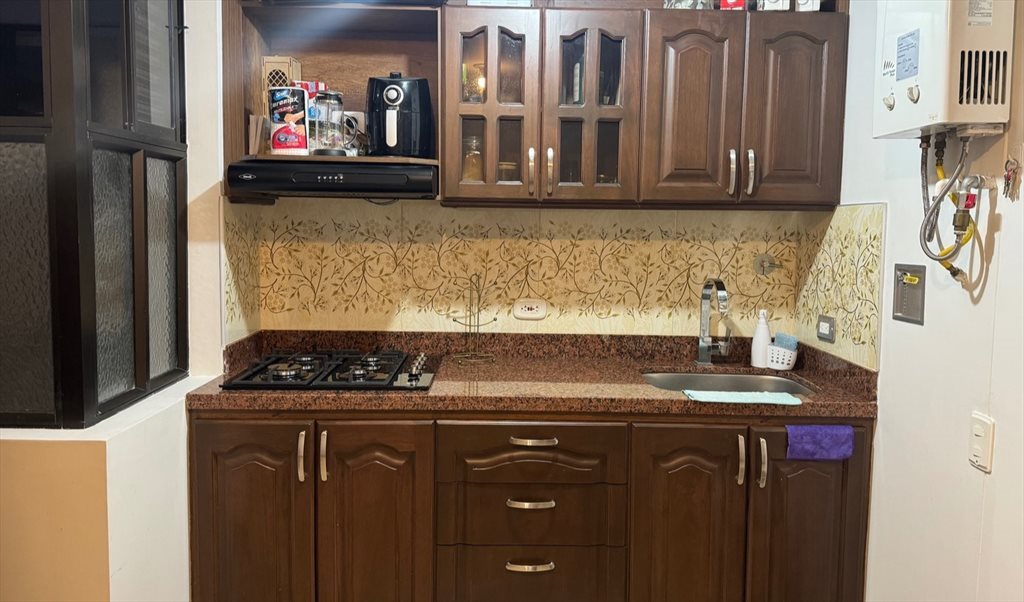 🍳 Cocina equipada con lo básico, sala, nevera y lavadora.