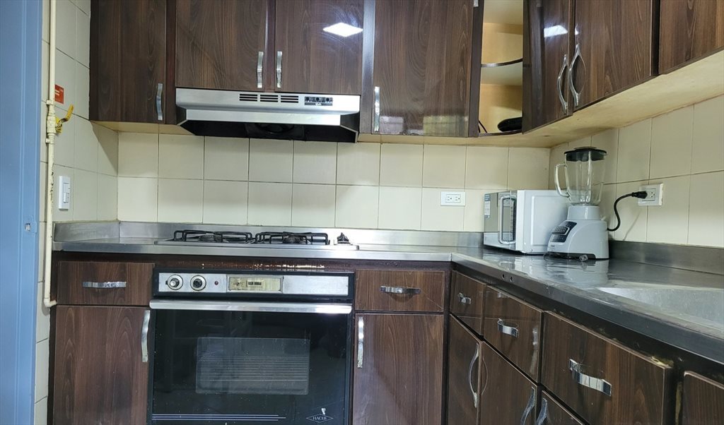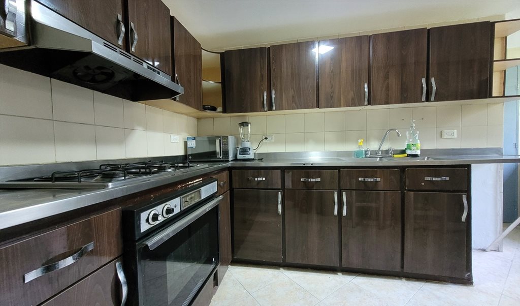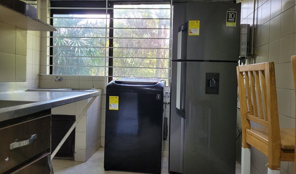 Este apartamento cuenta con 6 habitaciones y 3 baños. Una cocina amplia con barra para comer, nevera amplia y lavadora.