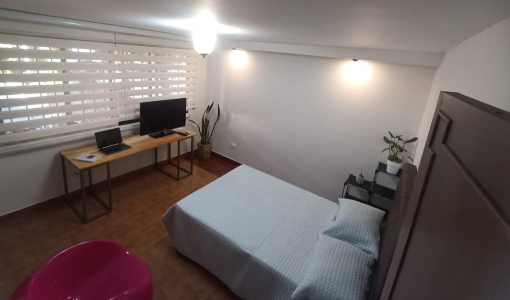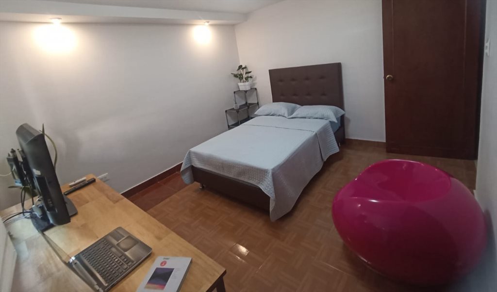 Habitación con cama Semidoble nueva. Televisor con Google TV , Escritorio de Trabajo Closet. Internet fibra óptica 500 MB. Ideal para nómadas digitales o tele trabajo por sus espacios tipo coworking.