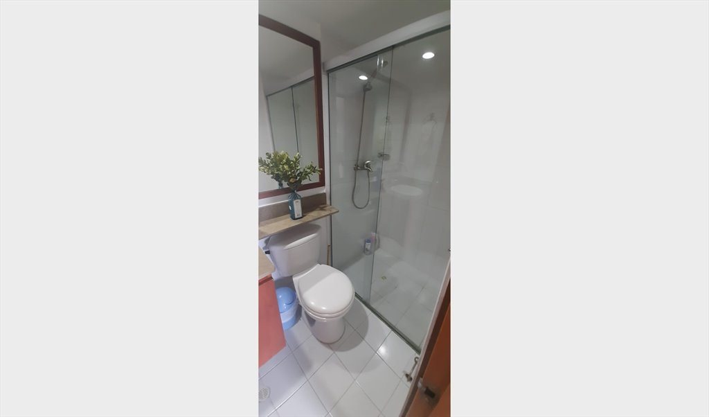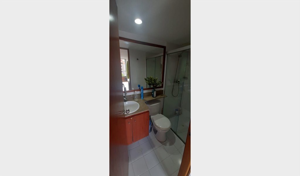 Tengo disponible una habitación para compartir, es la habitación secundaria tendrías un baño para ti que es el baño social el cual tiene ducha, compartiremos los espacios comunes del apto como sala, comedor, cocina, etc.