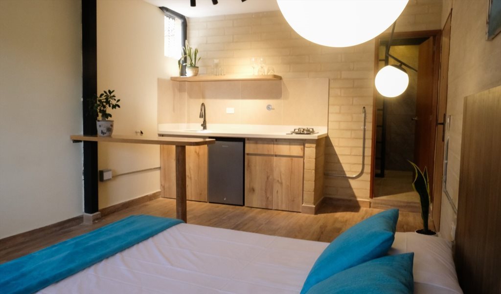 Son modernos, cómodos, son dos en un mismo piso, con acceso común, cada uno con su ingreso independiente, zona de ropa común, lavadora y secadora (con costo adicional). Cocineta en cada apartaestudio, dotados de todo lo necesario para preparar alimentos, con nevera pequeña. Quedan a media cuadra de Almacénes éxito de Colombia, con parqueaderos, gimnasios, en la misma zona. el estadio Atanasio Girardot a 10 minutos caminando, estación del metro Suramericana, a 10 minutos caminando, universidades, colegios, centros comerciales, zona de la 70, todo cercano para ir caminando. Existe transporte permanente al rededor.