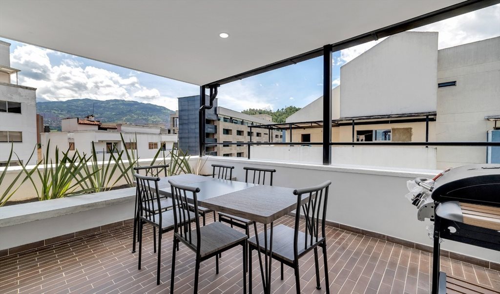 Penthouse amoblado en arriendo. Ubicado al frente de la universidad Luis Amigó, cerca del Éxito de Colombia, por el sector Estadio, en una excelente zona residencial, muy central y cerca de buenas rutas de buses, cerca de la estación suramericana de centros comerciales, restaurante y supermercados. Mide 120 metros cuadrados. Es un piso 9 con ascensor, está recién remodelado, tiene 2 alcobas con baño, closet y televisor, 2 baños y medio, cocina integral totalmente equipada, sala con sofá y televisor, comedor exterior y una espectacular terraza con vista a la ciudad de la eterna primavera. La cocina está totalmente equipada y amoblada, tiene zona de ropas con lavadora y secadora. El inmueble cuenta con muy buena iluminación natural y ventilación. Incluye todos los servicios (agua, energía, luz, Internet y Televisión por cable). Renta mínima por 3 meses