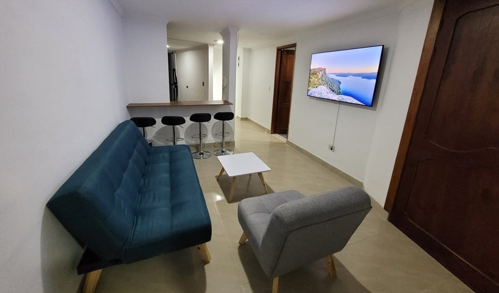 🏠 Este apto tiene todos los muebles y electrodomésticos nuevos y estas zonas comunes: sala con TV de 60 pulgadas, comedor, cocina, baño social, zona de lavado con lavadora-secadora. Internet de muy alta velocidad de 600 MB. Los precios incluyen todos los servicios (no comida) y aseo completo al apto y habitaciones cada tres semanas.