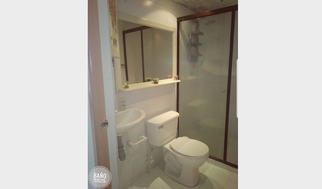 El baño es el social y se comparte únicamente con el otro inquilino y ocasionalmente con visitas (no frecuentes).