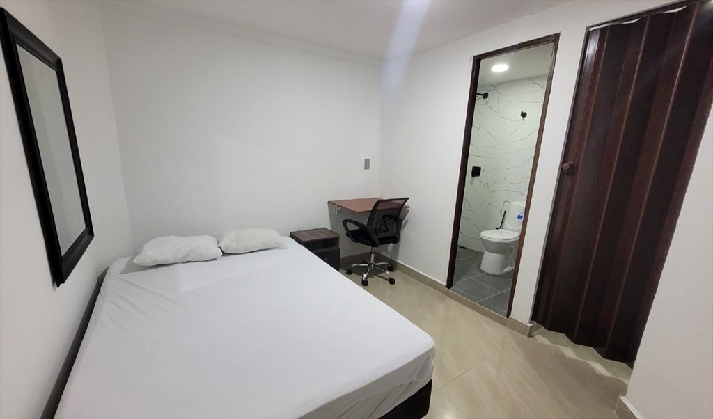 1️⃣️ Habitación con baño compartido (solo con una persona) con cama grande doble, mesa de noche, TV smart nuevo de 43 pulgadas, closet, escritorio con silla ergonómica Precio: $ 950.000.